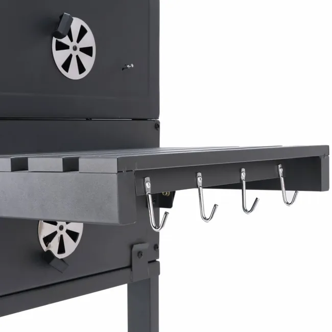 Vantagens do produto Tampa e tanque equipados com arejadores Altura ajustável da bandeja do carvão Duas prateleiras laterais com ganchos Um abridor de garrafas integrado! Esta churrasqueira pode ser usada no modo de fumar ou churrasco tradicional. Graças aos seus 4 aeradores, acende-se rapidamente. Estes aeradores ventilam as brasas para permitir que o ar circule facilmente. Encontrá-los-á de ambos os lados do tanque e da tampa. Uma manivela permite-lhe ajustar a altura da panela de aço para variar a temperatura de acordo com as suas necessidades. O termómetro na tampa permite controlar a temperatura. Este produto de aço robusto e de alta qualidade é revestido com uma tinta de esmalte resistente ao calor. 3 grelhas esmaltadas, uma das quais redonda e amovível, são fornecidas com o barbecue, bem como uma protecção térmica cromada. A abertura na frente permite carregar o carvão. Fabricado em aço de alta qualidade com tinta resistente ao calor Abertura frontal com pega para carregar o carvão vegetal Tabuleiro de carvão de aço ajustável por meio de uma manivela Termómetro na tampa Grelhas: 3 grelhas de ferro fundido esmaltado, 1 das quais é amovível Protecção térmica cromada Prateleiras: 2 laterais, de aço e dobráveis, equipadas com 4 ganchos 1 prateleira inferior Ventiladores : 4, 2 de cada lado da tigela e tampa Pegas: 2, aço inoxidável para tampa e cinzeiro Apanhador de cinzas removível Abridor de garrafas integrado Rodas: 2 Churrasqueira completa com prateleiras estendidas : L122xD65xA103,5cm / com prateleiras dobradas : L82xD65xH103.5cm Superfície de cozedura: W 58cm x D 42cm incluindo grelha central removível de 31,2cm de diâmetro / Altura da grelha: 81cm Manter quente: W54 x D20 Tabuleiro de carvão vegetal: W 48,5cm x D 30 x H 6cm A grelha central de cozedura pode ser substituída por outra grelha ou plancha de 31cm de diâmetro (não fornecida). Contudo, não garantimos a compatibilidade com este. AVISO! Não use gasolina para acender ou reacender