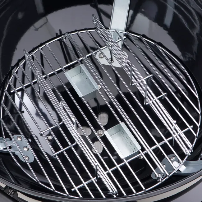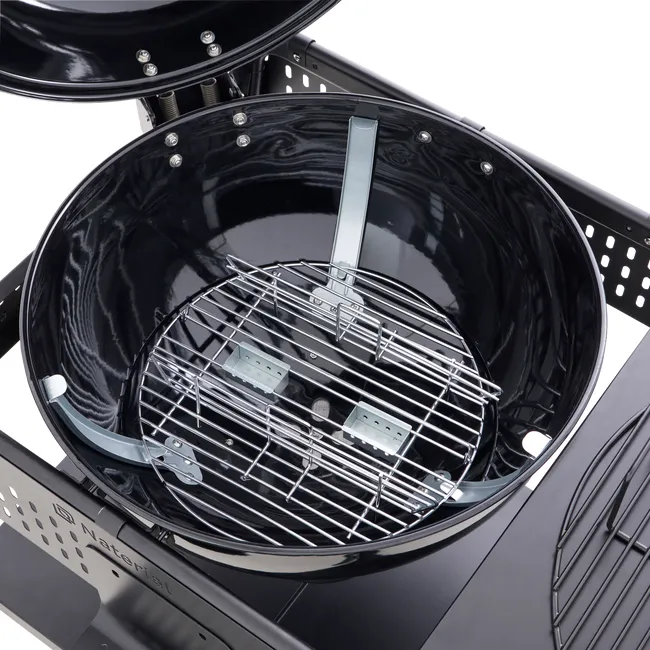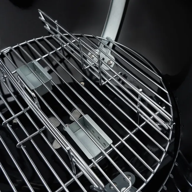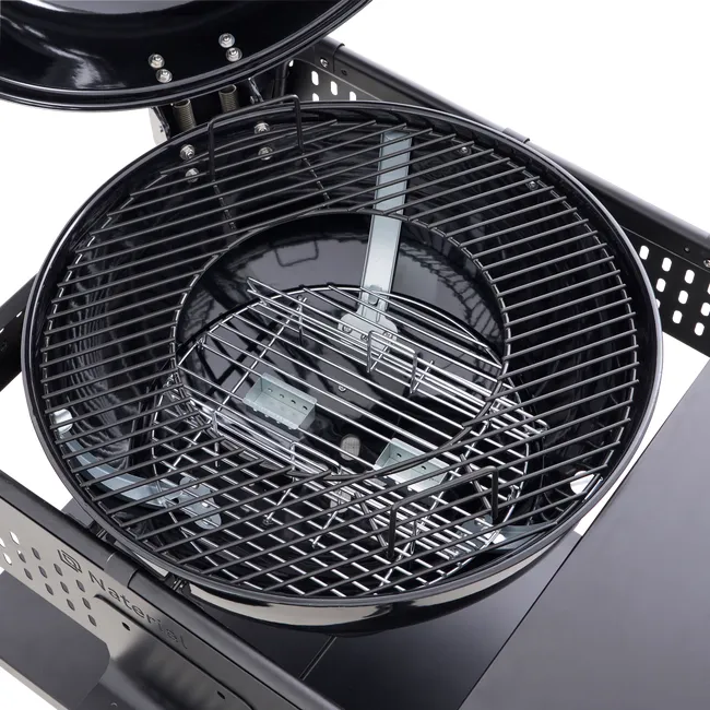 A cozedura direta permite selar os ingredientes rapidamente, colocando-os diretamente na grelha, em contacto com o calor. Equipado com uma grande tigela de aço e uma grelha de cozedura de 54 cm de diâmetro, permite-lhe defumar ou grelhar os seus alimentos enquanto desfruta de um calor uniforme. Tal como no forno, a cozedura indireta permite assar ou cozinhar ingredientes em lume brando. Os ingredientes não entram em contacto direto com a fonte de calor. Este tipo de confeção é ideal para preparar grandes pedaços de comida, como carne de vaca, mas também pizza, legumes ou sobremesas na grelha. Graças à sua tampa articulada, permite também cozinhar e cozinhar em lume brando, além de facilitar o manuseamento dos alimentos.