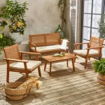 Conjunto de mobiliário de jardim com sofá em madeira, 4 lugares, Bohemia, 117x64x74 cm