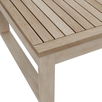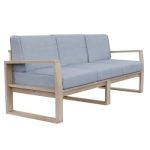 Desfrute de um lanche gourmet ao sol com o conjunto Solaris. No seu deck ou varanda, combina conforto e estilo graças à sua construção em madeira de acácia amiga do ambiente. Um conjunto confortável e durável O conjunto de jardim Solaris é composto por um sofá para 3 pessoas, duas poltronas individuais e uma mesa de centro. As almofadas são confeccionadas em poliéster e tratadas com anti-UV e hidrorrepelente, o que retarda o desbotamento e permite limpar imediatamente manchas acidentais. A mesa de centro do conjunto Solaris oferece-lhe um suporte ideal nos seus momentos de relaxamento ao ar livre. As poltronas oferecem assentos confortáveis, respeitando o seu espaço. Também confeccionados em madeira de acácia, são resistentes às variações climáticas como chuva, vento ou frio. Leves, são fáceis de mover. A madeira selecionada para esta série provém de florestas certificadas pela sua gestão responsável e sustentável. Um estilo naturalmente moderno Tal como a série Solaris, tem um estilo natural reforçado pelo seu design em acácia. Geometricamente, os braços e as pernas do sofá se encontram em formato de “U” aberto e arejado. A mistura de madeira clara e almofadas cinza reforça o estilo natural e suave do conjunto. O design das poltronas individuais é semelhante ao do sofá para garantir a harmonia natural do conjunto. Combine o seu conjunto com a mesa alta Solaris. Dicas de manutenção As almofadas são totalmente removíveis para facilitar o cuidado. Recomenda-se também nutrir a madeira uma ou duas vezes por ano com óleo de teca ou linhaça. Para preservar a cor e evitar que fique cinza, pode-se usar um limpador de madeira. Por fim, é recomendado apertar os parafusos do seu conjunto uma vez por ano, devido à natureza viva da madeira. A sua vantagem ambiental A acácia é um material vivo, 100% reciclável. É certificada a partir de florestas cuja gestão é reconhecida como responsável e sustentável em três áreas: social, ambiental e económica. Perante alertas ambientais ligados à desflorestação, uma organização independente controla a rastreabilidade dos produtos através de uma rigorosa política madeireira para garantir a sua origem legal e responsável. Com sede no Vietnã, nosso fornecedor está comprometido desde 2009 no processo de certificação e construiu parcerias sustentáveis com subcontratados e fornecedores locais