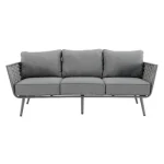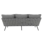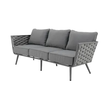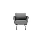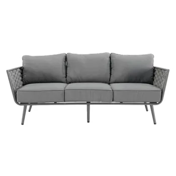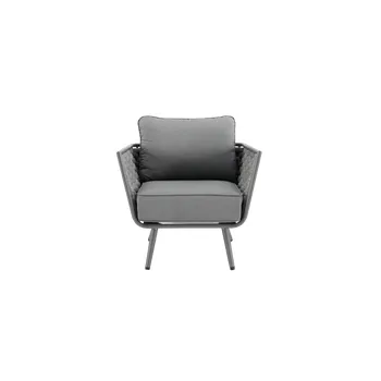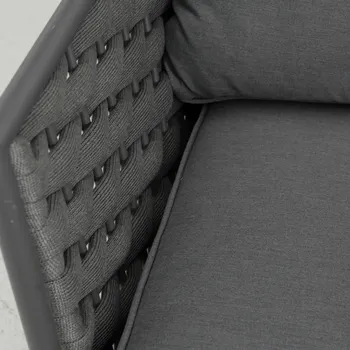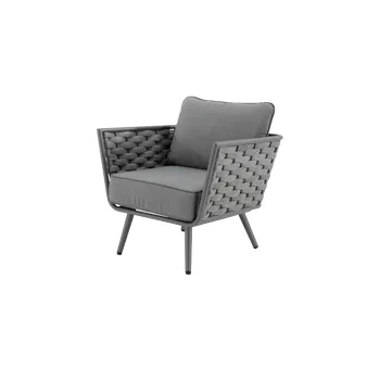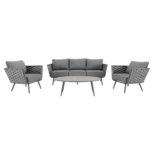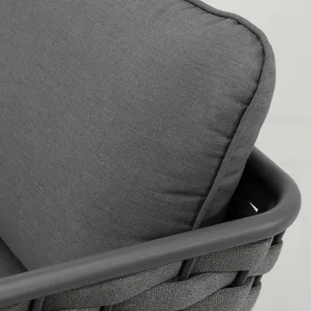 Adote o mobiliário baixo de jardim Nilo para a sua varanda ou jardim! Composto por um sofá, duas poltronas individuais e uma mesa de centro, recebe até 5 pessoas em um ambiente moderno e aconchegante com sua tecelagem de náilon. O conforto da sua sala de estar ao ar livre O salão baixo do jardim Nilo pode acomodar até 5 pessoas para um lanche em família ou um aperitivo com amigos. Está equipado com almofadas grossas que oferecem um importante conforto de assento. As almofadas são feitas de poliéster e são resistentes aos raios UV e repelentes à água para retardar o desbotamento e permitir a limpeza imediata de manchas acidentais. O sofá e as poltronas possuem uma elegante capa de largas tiras de náilon, que lembra a estética dos sofás de interior. Além do visual contemporâneo, esse material é durável e robusto: é resistente às variações climáticas e também à abrasão. A estrutura de todos os elementos do conjunto é em alumínio, um material durável, leve e resistente que resiste à humidade e à ferrugem. Um conjunto moderno e elegante Monocromático, sua cor cinza escuro reforça seu visual contemporâneo. Cada peça de mobiliário tem quatro pernas tubulares de alumínio delgadas que se inclinam ligeiramente para fora para uma aparência elegante. Combine-o com a Pergola Manea para um espaço de relaxamento harmonioso. Dicas de manutenção Ideal para uso diário, o conjunto Nilo requer pouca manutenção. Recomenda-se prepará-lo para o inverno sob uma capa respirável Naterial durante longos períodos de não utilização. Da mesma forma, as almofadas são totalmente removíveis e devem ser protegidas da humidade quando não estiverem em uso. O alumínio pode ser facilmente limpo com pano úmido e produto neutro.