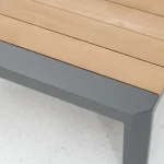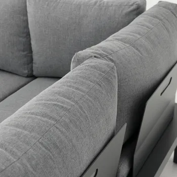 Acomode confortavelmente 5 pessoas no mobiliário baixo de jardim Bali! Composto por um sofá de canto e uma mesa de centro, permite economizar espaço enquanto desfruta de uma confortável e moderna área de relaxamento. Um sofá confortável e moderno O mobiliário baixo de jardim Bali acompanha-o nos seus momentos diários. Quer seja uma refeição ou uma pausa ao sol, o sofá de canto tem grandes prateleiras nas laterais para colocar os seus óculos de sol, um livro ou uma bebida, enquanto a mesa permite colocar a sua louça. Assim como a mesa de centro, são feitas em teca, madeira resistente às variações climáticas como frio e humidade, e alumínio, material forte, leve e durável. Os encostos, feitos em placas de alumínio, são arejados e individuais para que cada um tenha seu espaço. Suas almofadas grossas têm uma cor cinza que combina harmoniosamente com a mistura teca-alumínio do conjunto. A teca selecionada para esta série provém de florestas certificadas pela sua gestão responsável e sustentável. Um estilo industrial Projetado com inspiração industrial, o conjunto Bali representa a aliança entre conforto e estética. A sua forma angular permite-lhe instalá-lo facilmente no seu jardim ou no seu terraço para um ambiente moderno. A combinação da madeira antracite e teca confere ao seu conjunto um estilo contemporâneo e acolhedor. Para um resultado harmonioso, combine-o com o guarda-sol Sonora LED. Dicas de manutenção: para preservar o seu mobiliário baixo de jardim Bali, é recomendável protegê-lo durante longos períodos de inatividade. Recomenda-se também nutrir a madeira, uma ou duas vezes por ano, aplicando óleo de teca ou linhaça. Para preservar a cor e evitar que fique cinza, pode-se usar um limpador de madeira. As almofadas são removíveis e podem ser facilmente limpas com lavagem à máquina a frio. Suas vantagens ambientais A teca, material vivo e 100% reciclável, é certificada como proveniente de florestas cuja gestão é reconhecida como responsável e sustentável em três níveis: social, ambiental e econômico. Perante alertas ambientais ligados à desflorestação, uma organização independente controla a rastreabilidade dos produtos através de uma rigorosa política madeireira para garantir a sua origem legal e responsável
