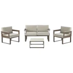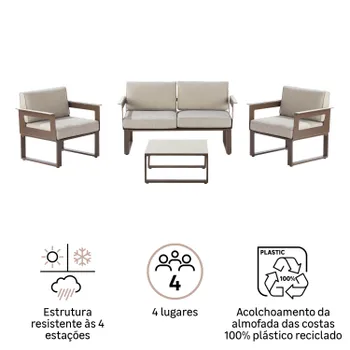 – Almofadas com um toque muito suave – Enchimento em espuma densa de 28KG / M3 que evita a deformação e desgaste ao longo do tempo – Estrutura em alumínio resistente e encaixes em aço inoxidável – Tampo de mesa com acabamento que confere maior durabilidade e resistência às condições do exterior