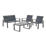 Os móveis de jardim Aramis são perfeitos para receber os seus convidados com conforto e elegância. Composto por um sofá de 2 lugares, duas poltronas e uma mesa de centro, este conjunto de exterior acomoda até 4 pessoas, criando um ambiente acolhedor para convívios ao ar livre.