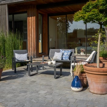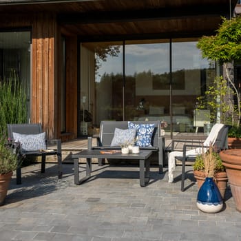 Destaca-se pela sua estética moderna e praticidade. Complemente com almofadas coloridas para criar um conjunto moderno no seu terraço. Concebido para uma fácil manutenção, o conjunto de mobiliário de jardim Aramis pode ser facilmente limpo utilizando um pano húmido e um produto neutro. Para manter a qualidade, cubra os seus móveis de jardim com uma capa para os proteger da sujidade e das intempéries. Estão disponíveis peças de substituição reparáveis para prolongar a vida útil dos seus móveis.