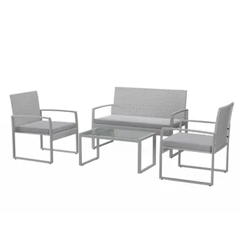 Conjunto de jardim baixo em resina trançada para 4 pessoas