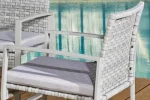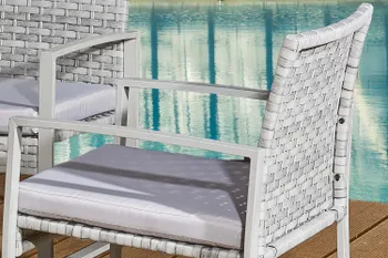 Para desfrutar de um chá ou sumo de fruta enquanto aproveita o seu terraço ou jardim ensolarado, este bonito conjunto de jardim de relaxamento Esna permitir-lhe-á relaxar ao ar livre. O seu revestimento em resina trançada confere-lhe um visual muito moderno. De facto, a resina trançada é o material principal dos conjuntos de jardim devido às suas propriedades de resistência às intempéries. A sua estrutura em aço garante robustez. Os 3 almofadões nas cadeiras e no sofá tornam este conjunto ainda mais confortável. O seu design limpo e moderno irá dar vida ao seu exterior.