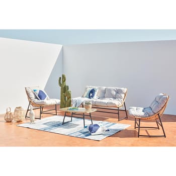 GUAHANA Conjunto de mobiliário de jardim baixo de 4 lugares em resina de vime e aço