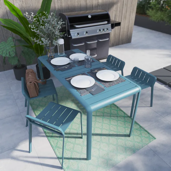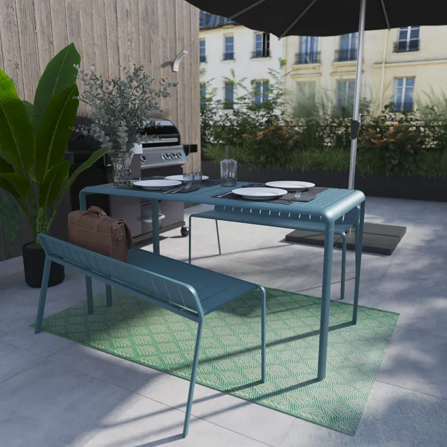 Uma mesa de varanda conveniente e sólida, projetada para ficar lá o ano todo, mesmo nas varandas mais estreitas. Café na varanda em todas as estações A mesa da varanda de Idaho Naterial é ideal para desfrutar da sua varanda ao longo do ano. Para tomar um café no início da manhã, enfrentando o nascer do sol ou para encontrar amigos em torno dos aperitivos, esta mesa permite otimizar o espaço armazenando os assentos diretamente embaixo da mesa e acomodando até 4 pessoas. Feito principalmente de alumínio, esta mesa ao ar livre suporta chuva e névoa salgada da beira -mar. Um alcance elegante e combinável Suas linhas retas e ângulos chanfrados refletem os códigos do estilo designer, reforçados pela escolha do alumínio como o material principal. A gama de produtos de Idaho está disponível em 8 cores que se combinam para permitir que você personalize seu exterior à vontade. O acabamento fosco dessas cores pede esse intervalo nas últimas tendências de decoração. Materiais duráveis e fáceis de manter Seu design de alumínio o torna uma mesa leve e durável. Com seus prendedores de aço inoxidável, ele pode ficar do lado de fora o ano todo. Uma capa protetora simples pode ser adicionada para protegê -la da sujeira de inverno. Prático todos os dias, um pano úmido e um produto neutro são suficientes para manter sua mesa. Durante todo o ano resistência climática8 cores disponíveis