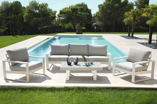 Concebida para combinar com os restantes artigos da gama LAS VEGAS, use-a como uma mesa de centro nos seus conjuntos de relax. A estrutura em alumínio é a garantia da sua resistência à ferrugem e às condições meteorológicas durante anos e anos.