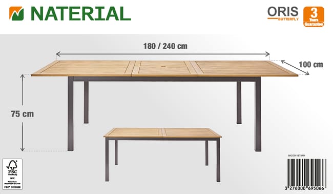 | Tipo de produto | Mesa de jardim extensível |