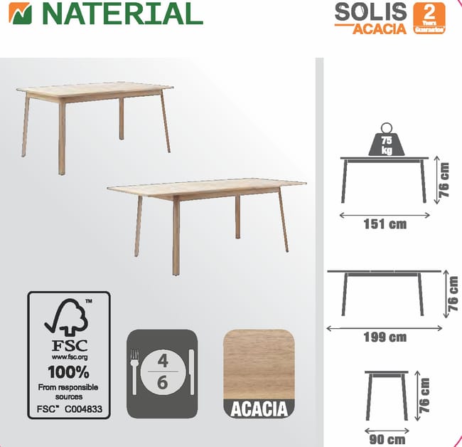 | Material do tampo da mesa | Acácia |