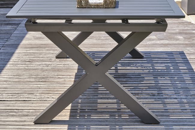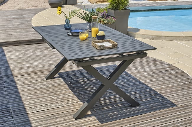 Mesa de jardim em alumínio cinza antracite com extensíƒÂ£o automática. DIMENSíƒâ€¢ES C 180/240 x L 100 x A 77 cm
