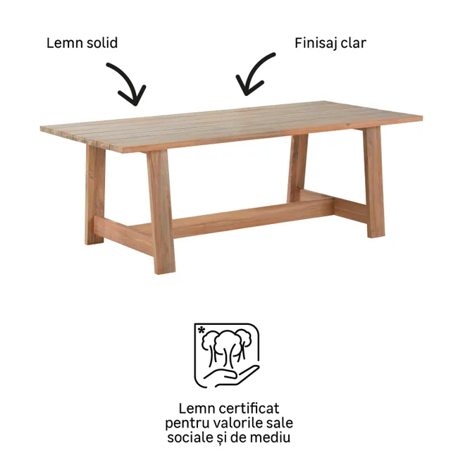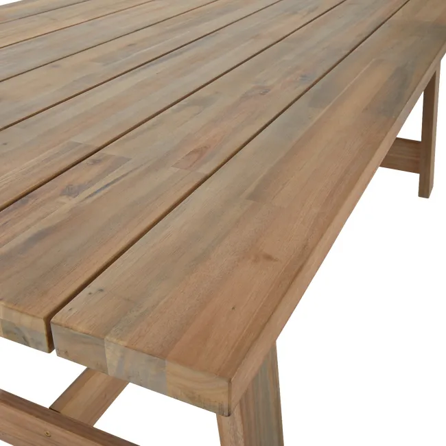 Uma mesa natural a adotar para as refeições da sua família no campo Jantares do país em seu jardim Projetado para acomodar confortavelmente 6 pessoas para uma refeição no campo no campo, a Mesa Nateurial da Fazenda II dará um estilo amigável e único ao seu exterior. Feito principalmente de madeira acacia, esta mesa de jardim oferece uma renderização elegante apoiada por sua cor semelhante à teca crua. Sua fabricação de madeira e parafusos de aço inoxidável oferecem resistência natural à umidade, mau tempo e UV, o que garante a sustentabilidade da sua mesa. Um país e um estilo amigável Esta mesa de madeira exótica oferecerá às suas refeições ao ar livre um tom ao ar livre, reforçado pelos pés compactos e inclinados da mesa, bem como por suas grandes ripas de madeira. Adote os bancos longos da mesma faixa para um estilo completo da Country House e 2 fezes Naterial Farm II para acomodar 2 hóspedes adicionais no final da mesa. Uma madeira duradoura fácil de manter Fácil de manter, um pouco de água morna e sabão de Marselha é suficiente para limpar a madeira. Para manter seus móveis permanentemente, é necessário alimentar sua madeira usando teca ou óleo de linho uma ou duas vezes por ano. Um nojento também pode ser aplicado à tabela para preservar sua cor original. No inverno, proteja sua mesa com a cobertura respirável nateurial para preservar sua qualidade. Finalmente, devido à natureza viva da madeira, é recomendável apertar os parafusos da sua mesa anualmente. É mais ambiental Acacia é um material vivo, 100% reciclável. É certificado de florestas cuja gestão é reconhecida como responsável e sustentável nas três áreas: social, ambiental e econômico. Esses produtos são controlados por uma organização independente para garantir sua origem legal e responsável. Com sede no Vietnã, nosso fornecedor está envolvido desde 2009 no processo de certificação e construiu parcerias sustentáveis com subcontratados e fornecedores locais desde 2009. Sustainable Wood Wood Finishsolid Wood Wood