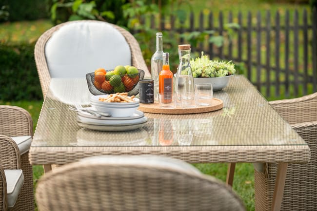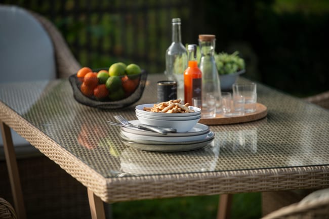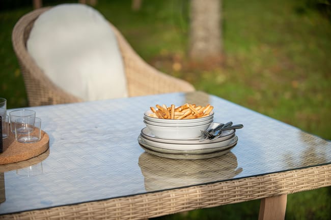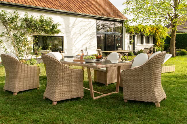 A mesa NATERIAL é ideal para 4 a 6 pessoas e foi concebida para combinar com os restantes artigos da gama COSTA RICA. A estrutura em alumínio é a garantia da sua resistência à ferrugem e às condições meteorológicas durante anos e anos.