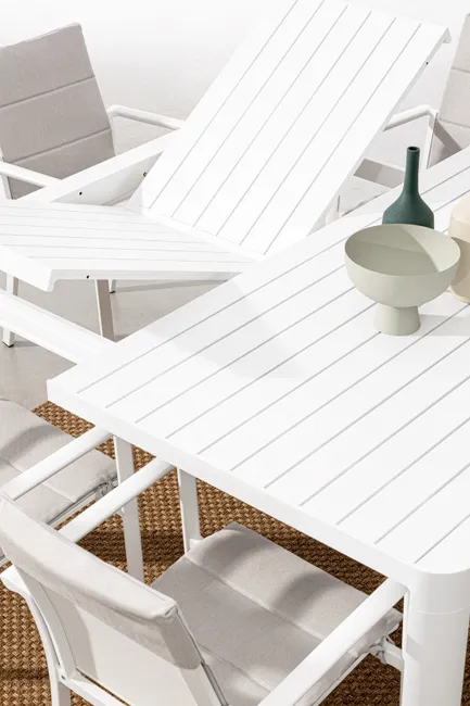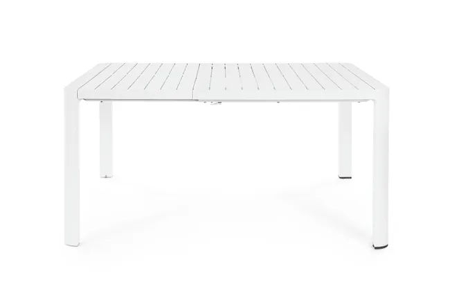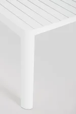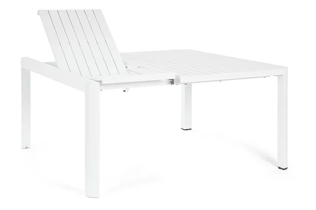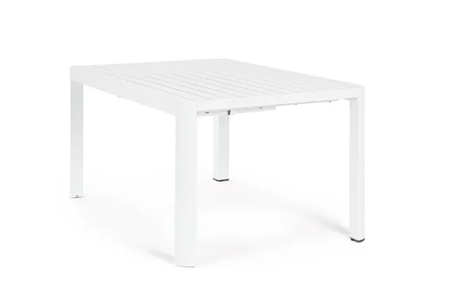 Mesa extensível “Kiplin” 149×97/149 branca em alumínio pintado para exterior em jardim e varanda