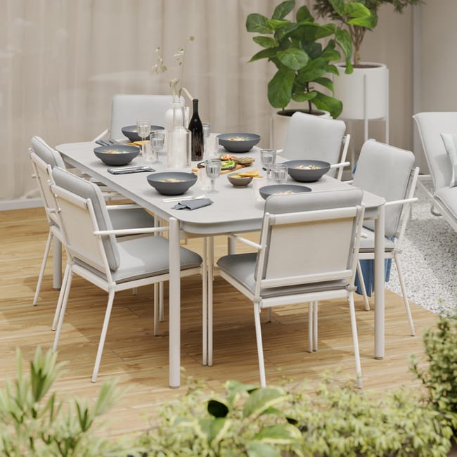 Mesa para jardim retangular 6 pessoas 200×100 cm branco e cinzento Naterial