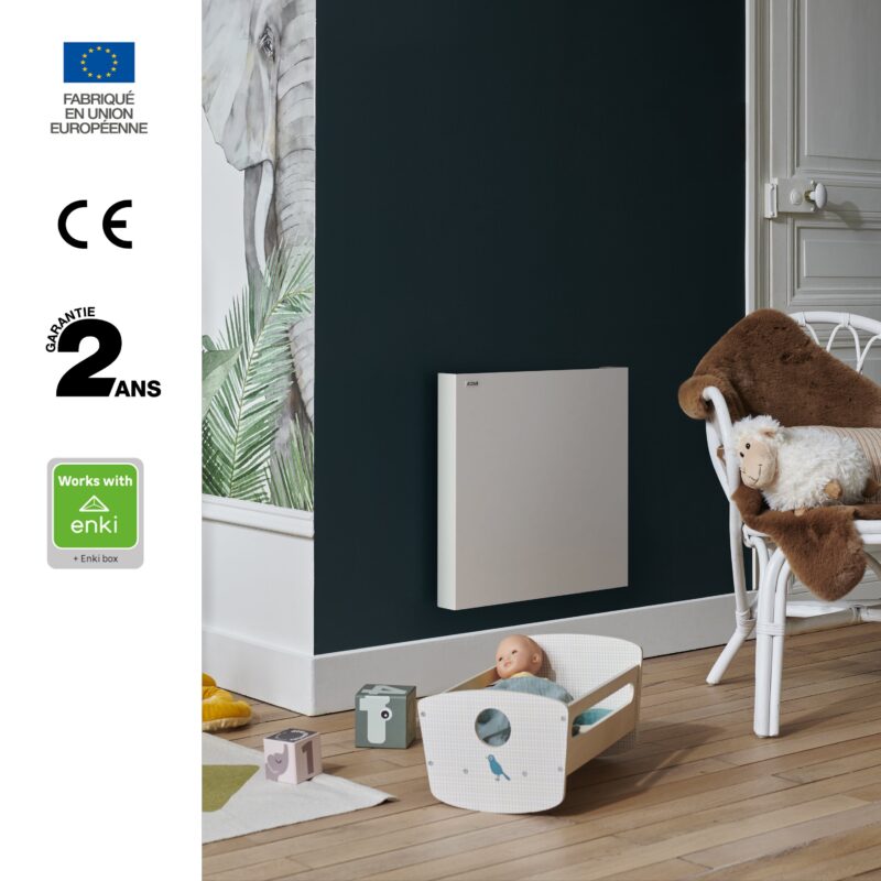 Design elegante com superfície lisa, combina com qualquer interior. Pedra grande com elemento de aquecimento integrado para radiação e qualidade do ar únicas. Conectividade Enki integrada. Monitore seu consumo e controle remotamente seu radiador com 1 clique.