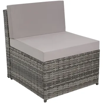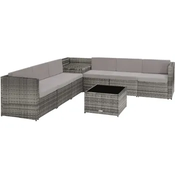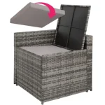 As combinações praticamente ilimitadas do acolhedor conjunto de rattan Verona da tectake tornam-no numa verdadeira tela em branco para sua criatividade. Cada um dos oito elementos individuais pode ser conectado livremente ao resto do conjunto ou usado de forma independente, de acordo com as suas preferências e espaço. O trançado de rattan polivinílico, forte e durável, combina perfeitamente com a cor do assento confortável e das almofadas das costas. O grupo estável de assentos é completado com um prático baú de armazenamento e uma mesa baixa, cuja resistente tampo de vidro preto confere à estrutura um toque de elegância.